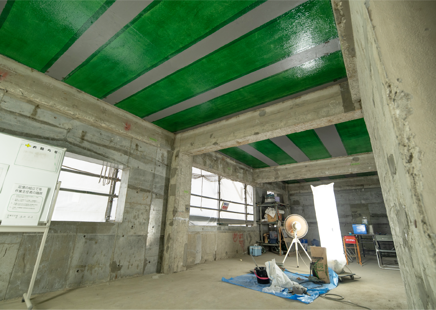 数ある補強工法を適材適所に配置した設計と柔軟な場対応力で条件の厳しい建物にも対応します。