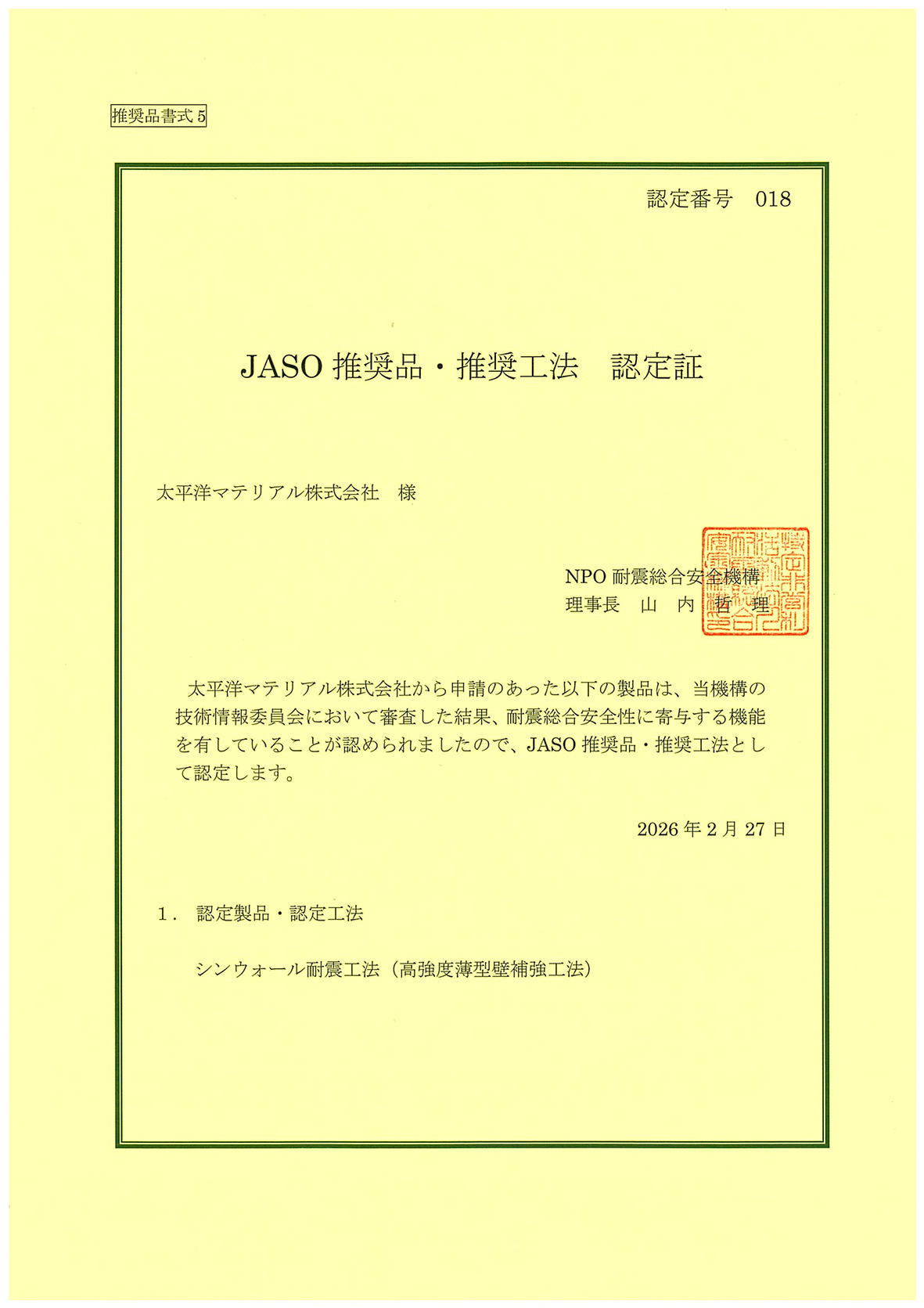 この認定は、本工法の有効性・信頼性が第三者機関により評価されたものです。